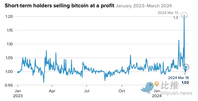比特币从上周开始走软,部分投资者获利了结。CryptoQuant 的数据显示,3 月 12 日,短期持有者出售比特币获利的数量大幅增加。