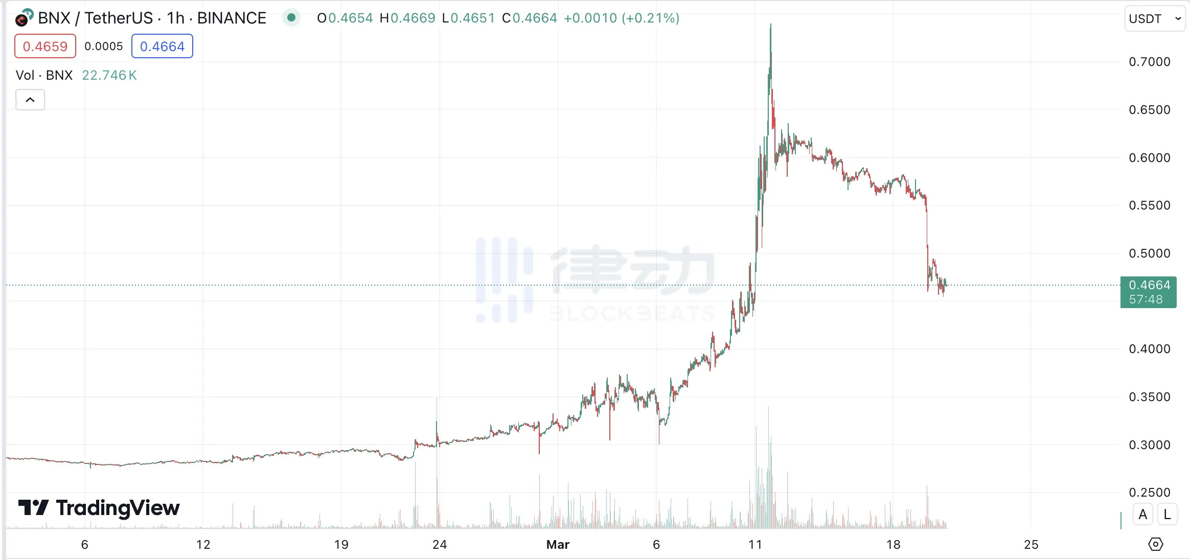 Ai Hero 是元宇宙链游平台 Binaryx 旗下首款 AI 链游,Binaryx 代币$BNX 在 3 月以来曾有超 110% 的涨幅,但近一周已跌去 24%。