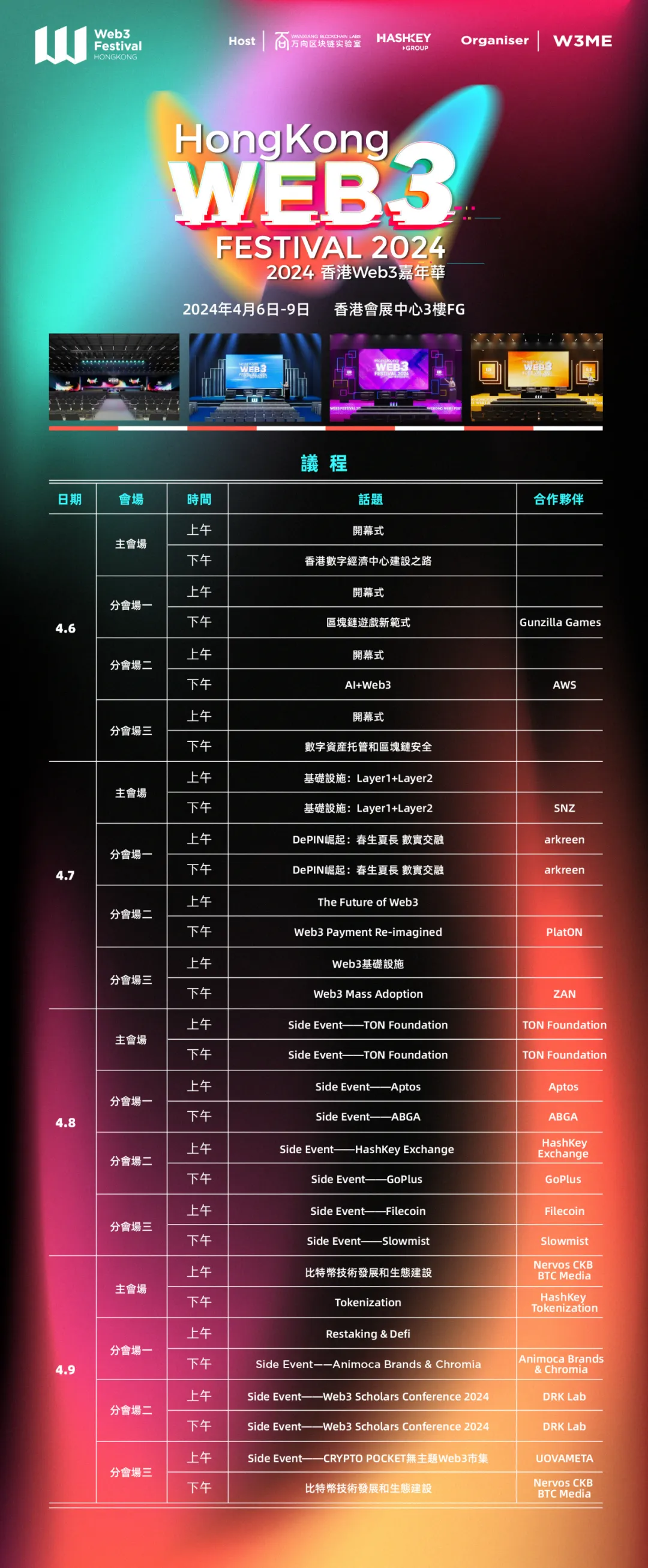 Co-organiser: Arkreen、AWS、Bitcoin Magazine、Nervos CKB、PlatON、SNZ、香港虚拟资产行业协会、ZAN