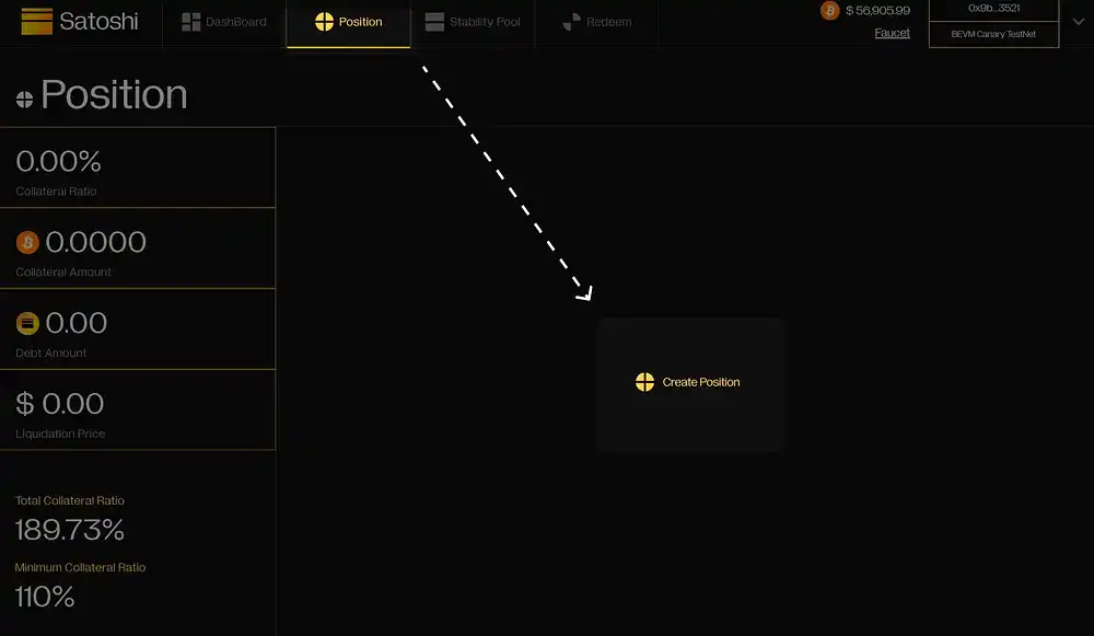 2. 前往 Satoshi Protocol App 后,在导航栏选择 Position 并点击 Create Position