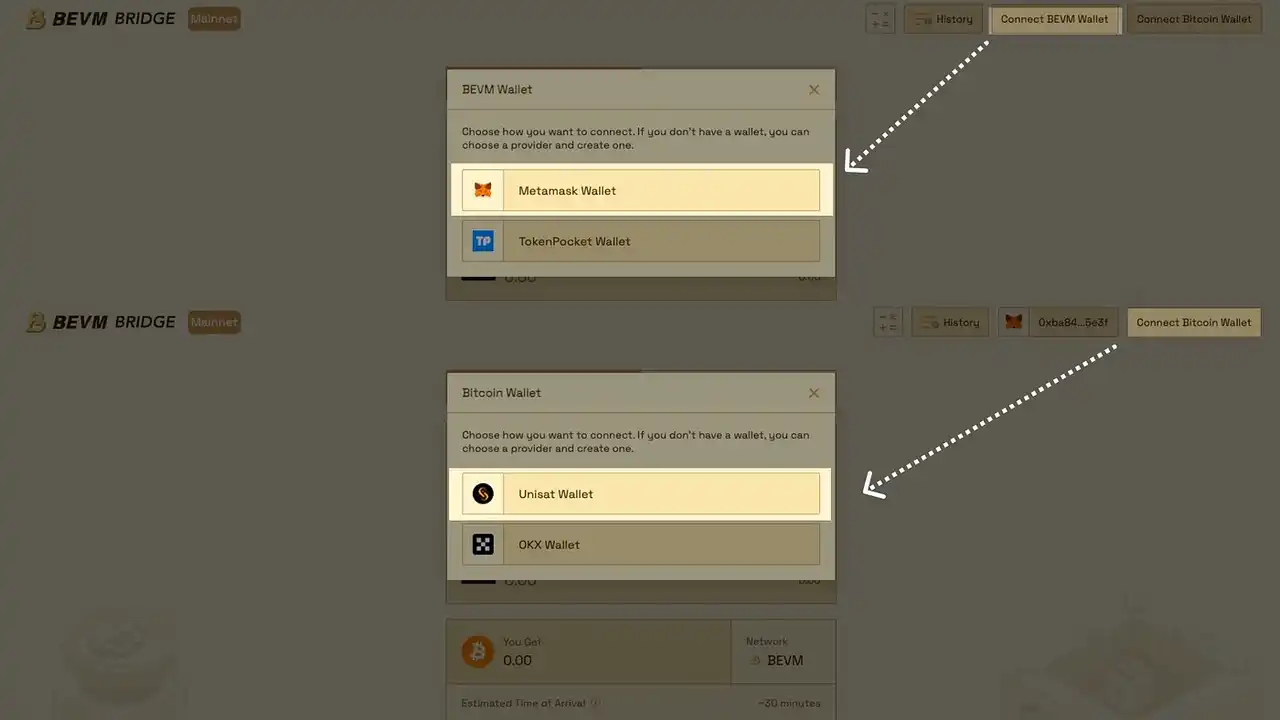 3. 连接 MetaMask 钱包和 UniSat 钱包