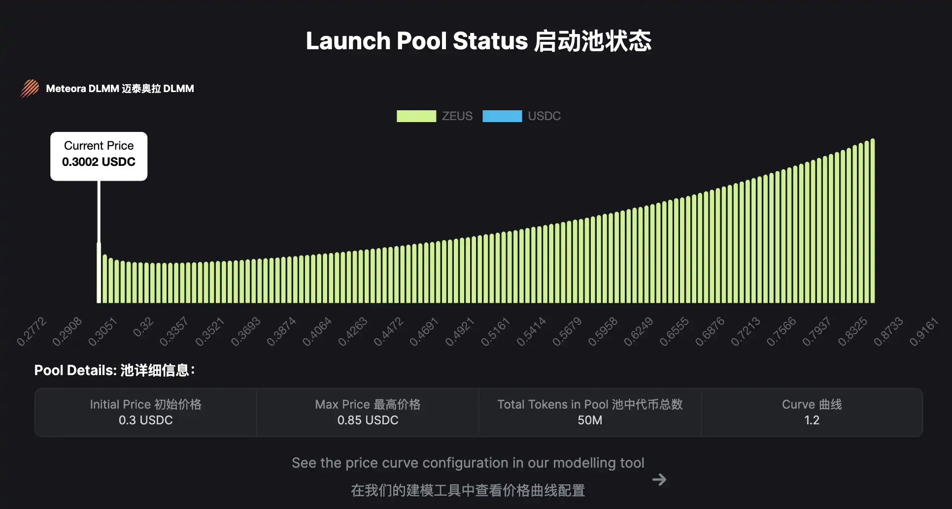 值得注意的是,Zeus Network 的 Launch pool 采用的是 Intuitive Launchpool Modelling(ILM 直观的启动池建模)模式。ILM 是一种有机启动项目和代币的新方式。该平台的一部分是 Meteora 的 DLMM Pool 池,以建立早期流动性支撑并允许引导有机流动性的方式提供单边流动性。在启动期结束时,流动性从 DLMM 池转变为跨场所的有机流动性。