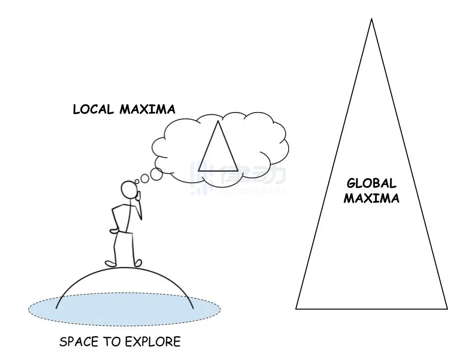 在熊市中,我们陷入了局部极大值。随着旧叙事崩溃,它们无法进一步支撑市场,创始人被迫进行探索,投资者也犹豫地愿意跟随。"创新触发器" 是新全球极大值的潜在 foothill,这成为探索的客观条件,围绕它可以建立新的叙事。
