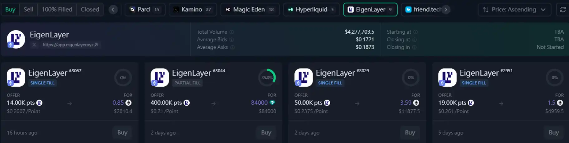 根据 Whales Market(场外买卖分数的协议)上的价格,每 1 分的 EigenLayer point 成本大概为$0.2。而在 AirPuff 策略开仓的平均每 1 分成本只是大约$0.11,比一般用户在场外购买分数便宜大概~45%.,为用户提供一个更实惠的选择。