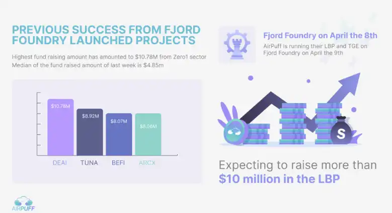 AirPuff 的代币公售会于四月八日至十一日,在 Fjord Foundry 的 LBP 进行,发行总代币量的 15%。