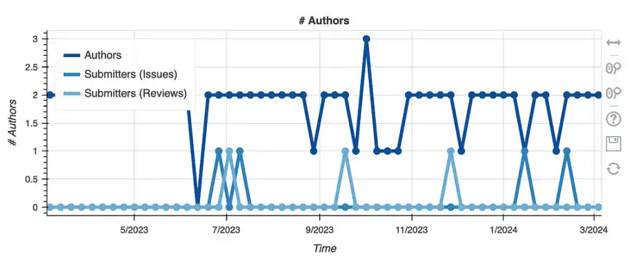 其对项目的代码开发仍然维持正常水平,开发人员也保持稳定。