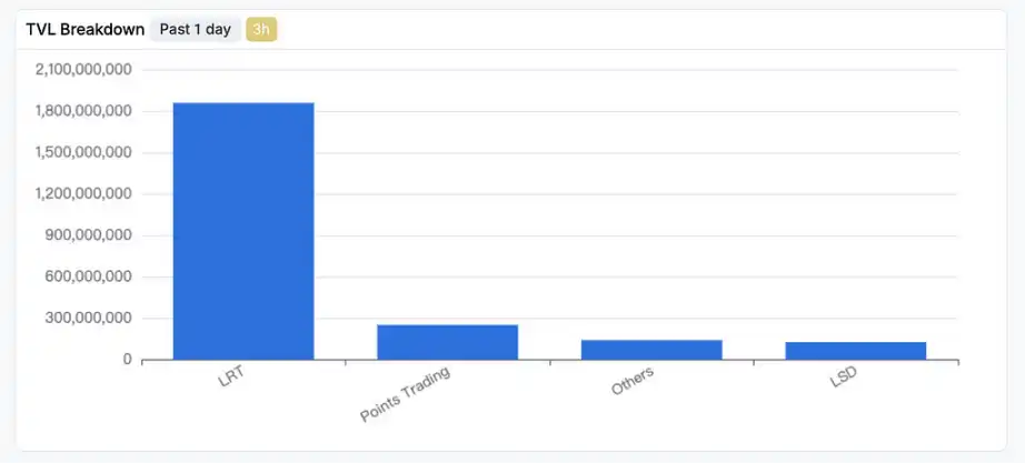· 流动性重新抵押代币(LRT)和 Restaking 代币:如截止目前,这部分 EigenLayer 以及 Renzo Finance 等,共计 170 亿美元的 TVL。