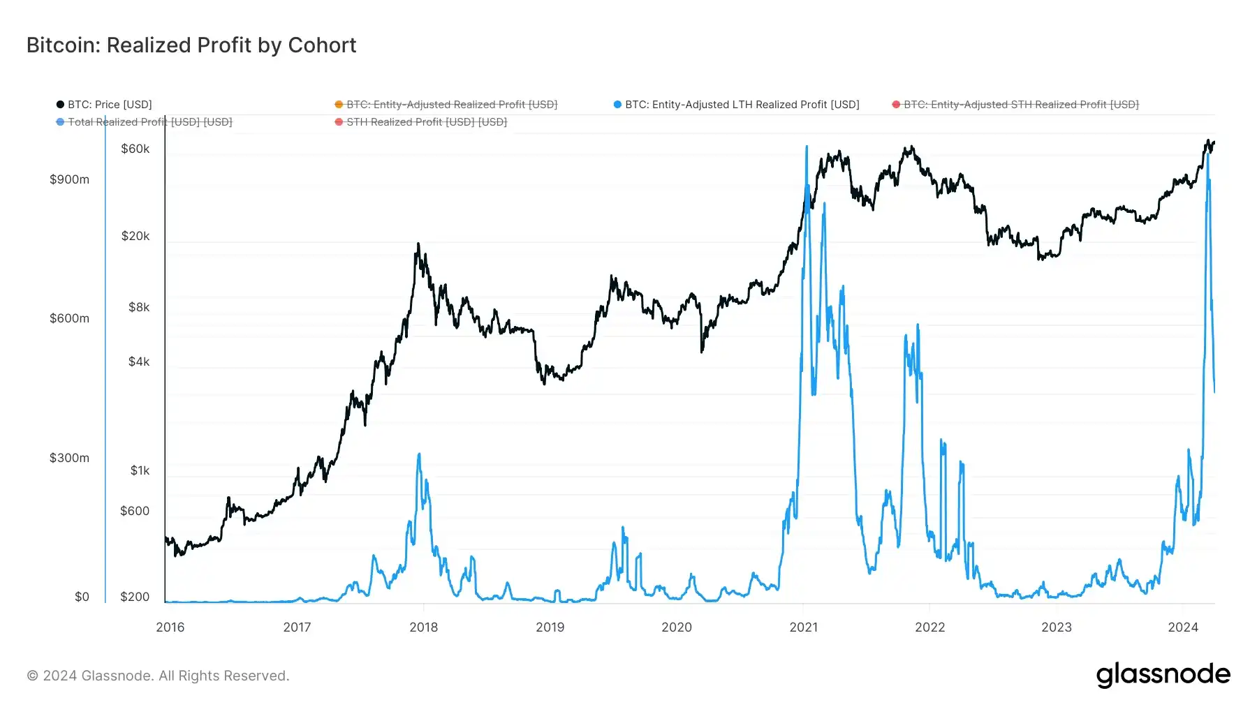 目前市场正将降息预期拖后至下半年,无论是美股还是加密市场,部分资金开始锁定利润离场。
