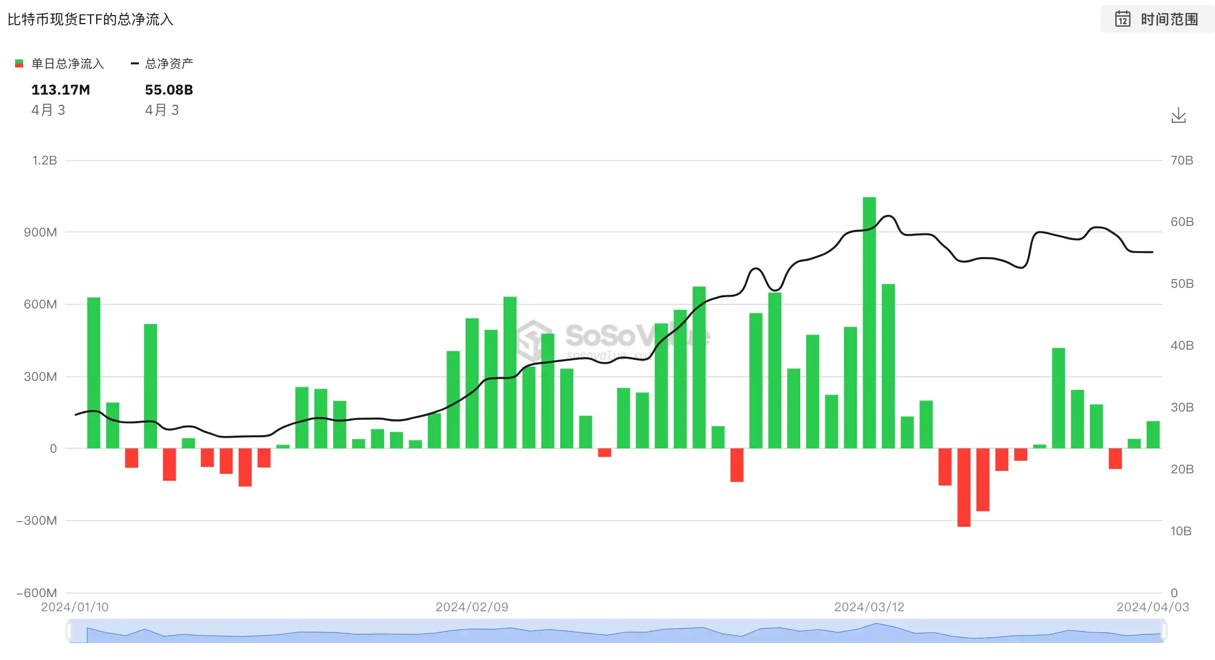 BTC ETF 通道的资金仍在持续流入,这是后继 BTC 价格恢复和创出新高的重要支撑之一。