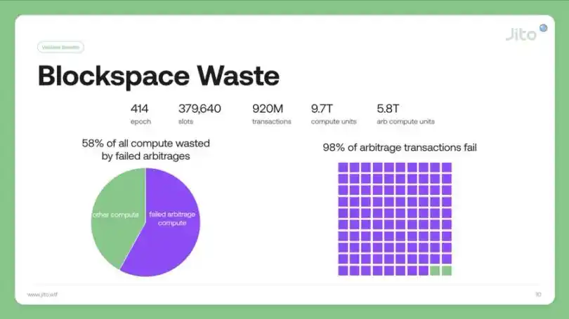 如果仔细观察,你可能会惊讶地发现,这些失败交易中只有大约 8% 来自真实用户,其余的都是链上机器人执行套利交易失败的案例:套利者会向 Solana 大量发送垃圾交易,因为与成功套利带来的回报相比,发送垃圾交易的成本微不足道。