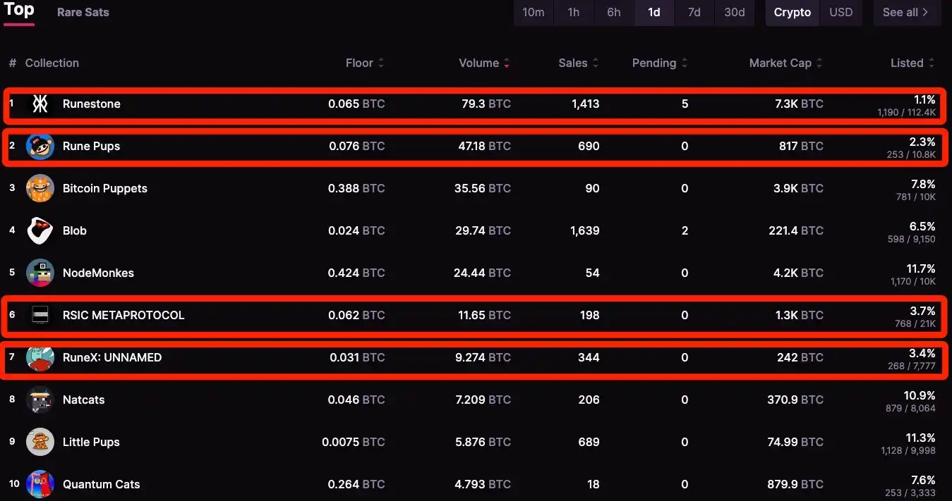 这一个月里,Runestone 市值为什么能超过 BAYC?或许主要动力还是来自于 Runes 协议超出市场预期的强劲表现。