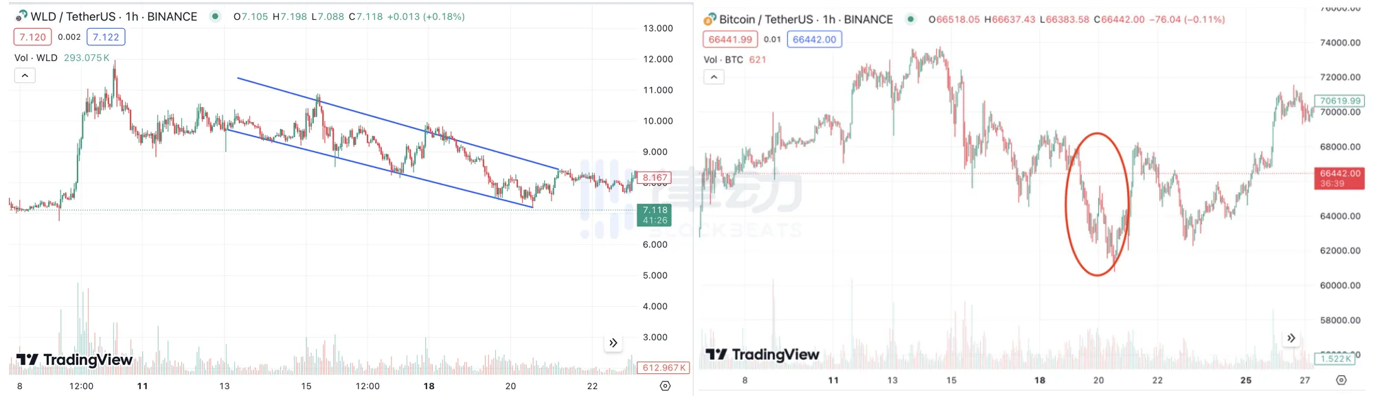 不必等待未知的 meme,0xdai 选择了合约,将命运掌握在自己手里。交易大赛开始之前,0xdai 已经对 WLD 观察许久,并有了几次成功下场的经验。百 U 基金给 0xdai 了高倍勇气,在 WLD 出现一周震荡下跌行情中,0xdai 通过 75 倍合约波段多空 WLD,让她的百 U 基金在 4 天时间里翻了 7 倍。