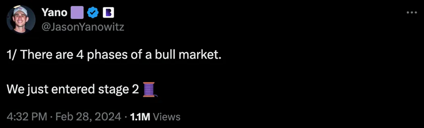 我不是唯一一个认为第二阶段已经到来的人。对于 Yano 来说,第二阶段是认识到我们处于牛市中,但很多朋友仍然没有意识到这一点。