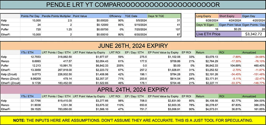 你可以在这里查看 Thor Hartvigsen 的 Pendle LRT 计算,在这里查看 Stephen DeFi Dojo 的实时计算。