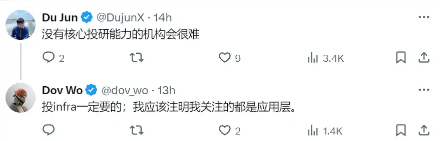 ABCDE 联创杜均在该条推文下做出了评论,称「没有核心投研能力的机构会很难」。