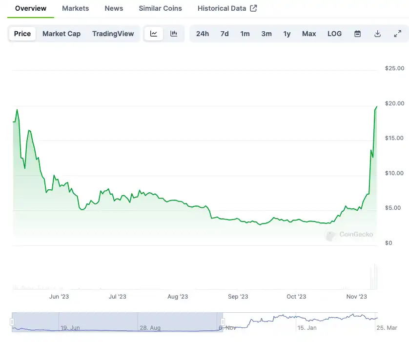 在 2023 年 5 月上线 GATE 交易平台后,ORDI 的价格达到了前期高点约为 25 美元。然而此后的四个月里,ORDI 的价格经历了很久的低迷时期,2023 年 9 月跌至 2.86 美元。