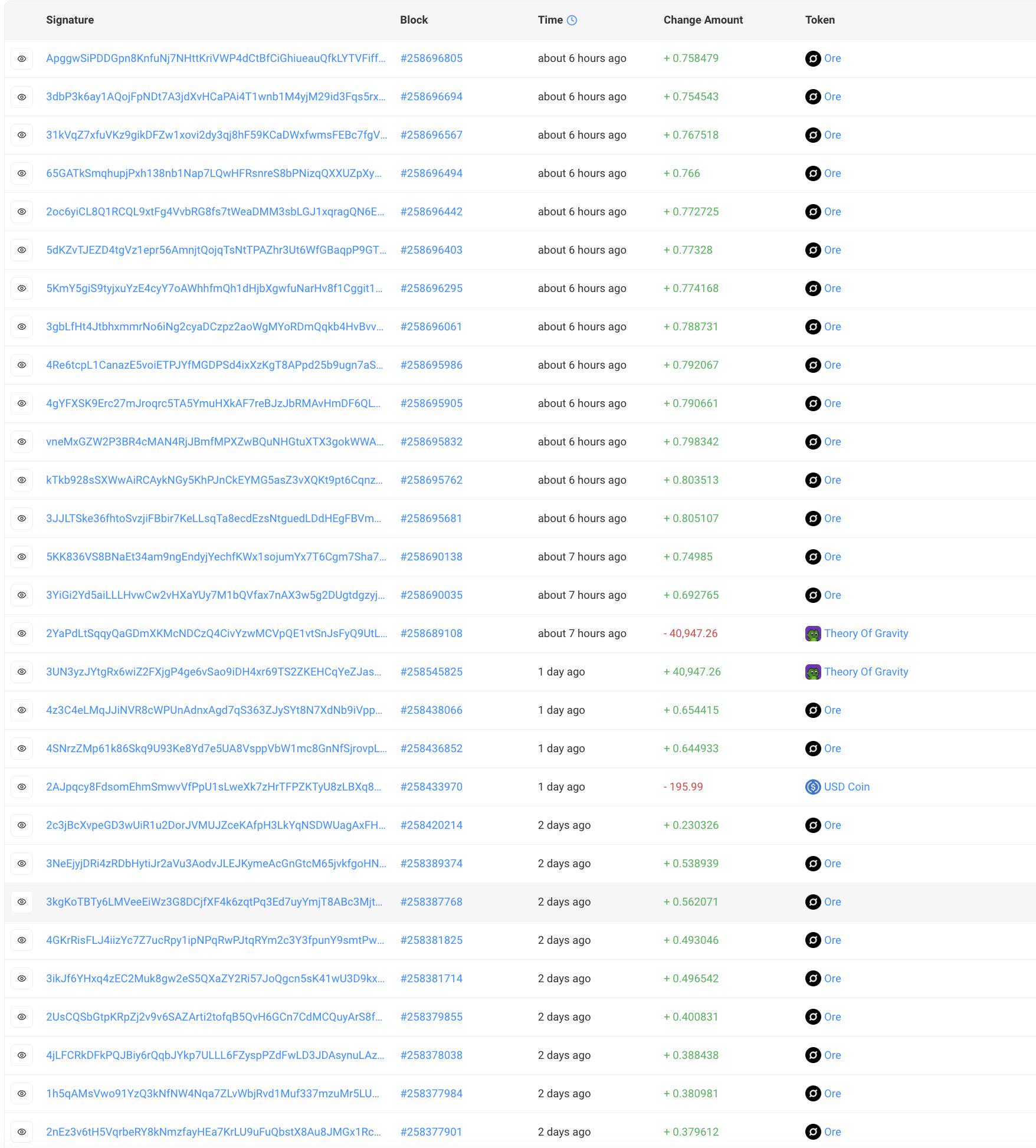Ore 旨在让用户在家和手机上都能随时挖矿 ORE,有用户戏称「就像在 Solana 网络上挖 BTC」。虽然项目在一开始上线时出现了一些 Bug,导致用户挖矿时频繁报错,但在 bug 逐步修复后,更多的用户纷纷入场,使得交易量在短时间内激增,造成了 Solana 网络近期的大拥堵。随着项目出圈,Ore 还吸引了 Meme 币 WIF 巨鲸的入场。