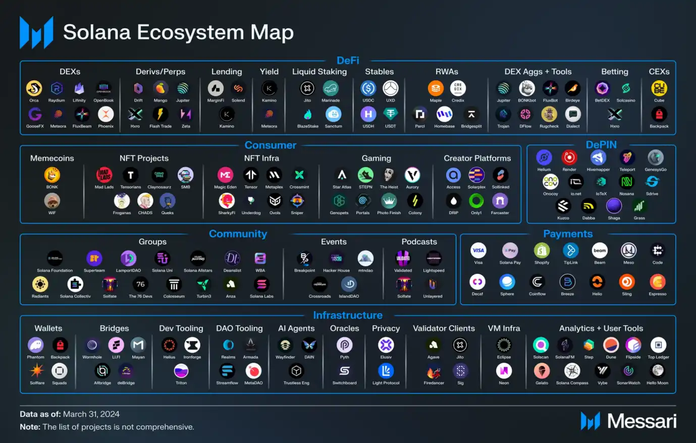 · 主要基于 Solana 构建的项目在第一季度融资 8920 万美元,比 2023 年全年融资总额多 250 万美元。