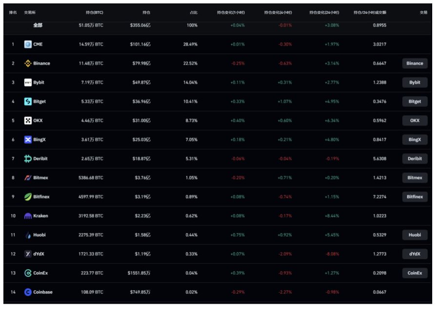 按照这些数据,Binance + ETH交易对的组合能给Ethena提供的市场容量已经非常接近极限了。但还可以通过引入多币种、多交易所来突破这个极限。按照Tokeninsight数据,Binance占据了衍生品交易市场50.1%的份额,按照Coinglass数据,除ETH以外,Top10币种在Binance的合约持仓总量约为ETH的三倍,按照这两个数据估算: