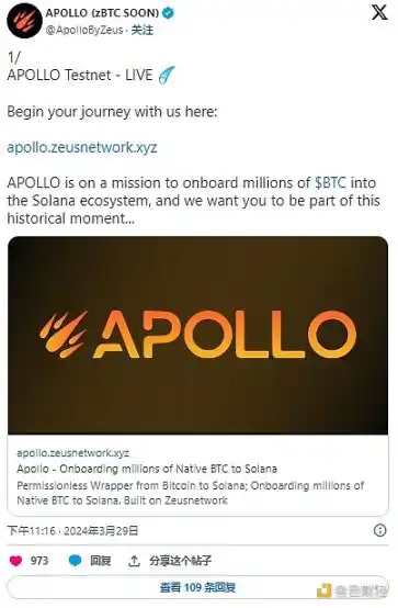 在 Solana 和 Stacks(领先的比特币 L2)创始人的支持下,Zeus Network 打算建立一个连接这两条链的生态系统。第一个产品将是 Apollo,这是一种比特币质押协议,目前在测试网中赚取收益。比特币和 Solana 生态系统之间还将有一个原生的、比特币支持的稳定币、跨链 NFT 工具,以及连接两个生态系统的借贷应用程序。
