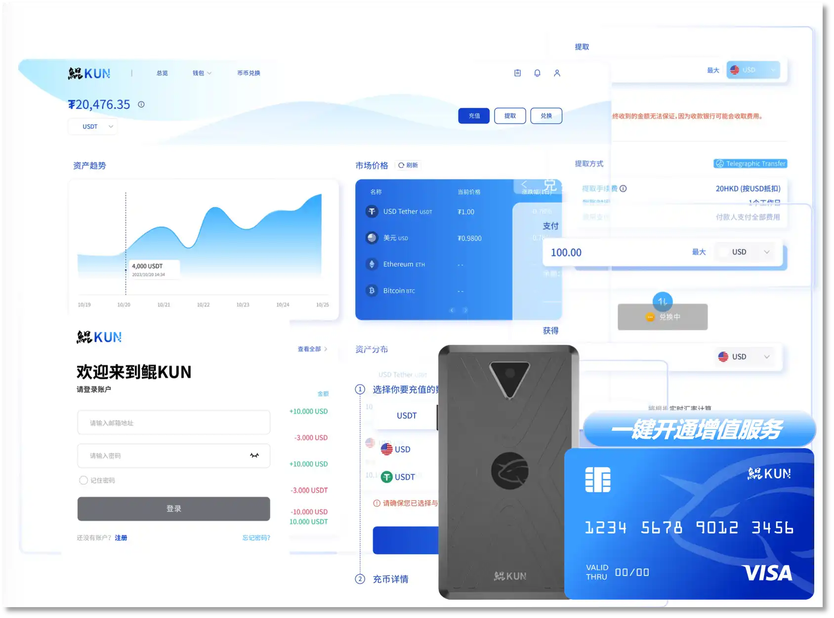 · l KUN Card™:多元场景的企业数币虚拟卡,支持数币充值,即申即领