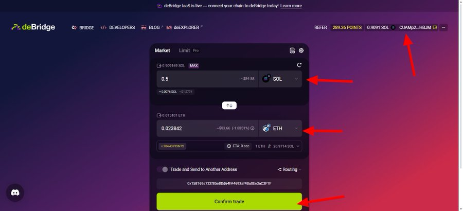 Debridge 发布了积分系统,我找到了一种有效地赚取积分的方法。