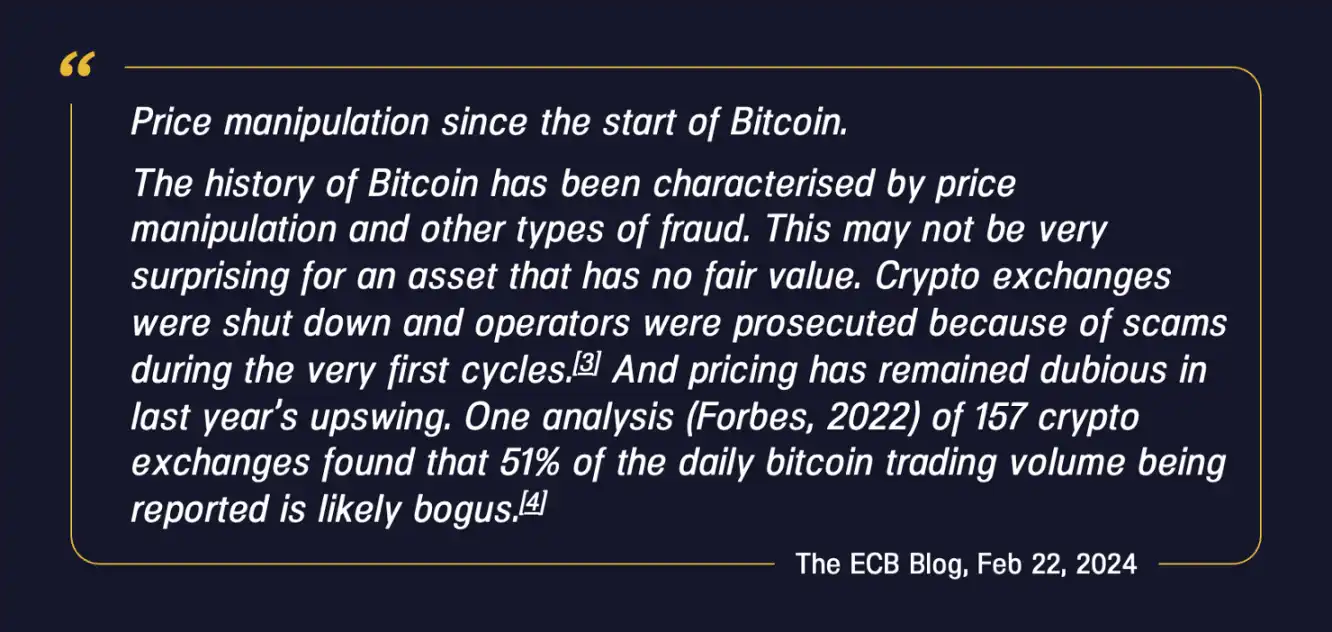 欧洲央行观点 3:比特币的价格受到操纵。