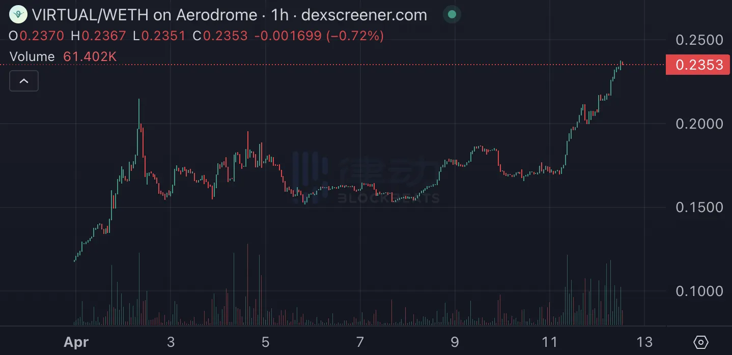 AI+游戏项目 Virtual 代币周涨幅 50%