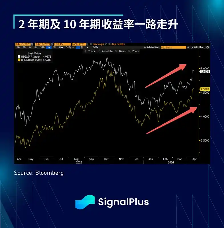 市场面临不友好的通胀数据,特别是周三的 CPI,核心价格朝着不乐见的方向发展,3 月份整体 CPI 和核心 CPI 均环比上涨 0.4%,CPI 年增率从上个月的 3.2% 升至 3.5%,核心 CPI 年增率保持在 3.8%,其中能源增长 1.1%,服务增长 0.5%,租金方面增长 0.4%,超级核心 CPI 环比再度上涨 0.65%。