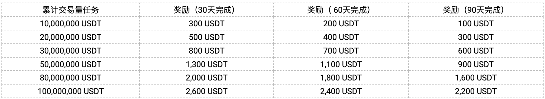 2.受邀好友完成指定交易任务即可获得相对应等级的奖励,邀请人最高可得 2,600 USDT空投奖金。