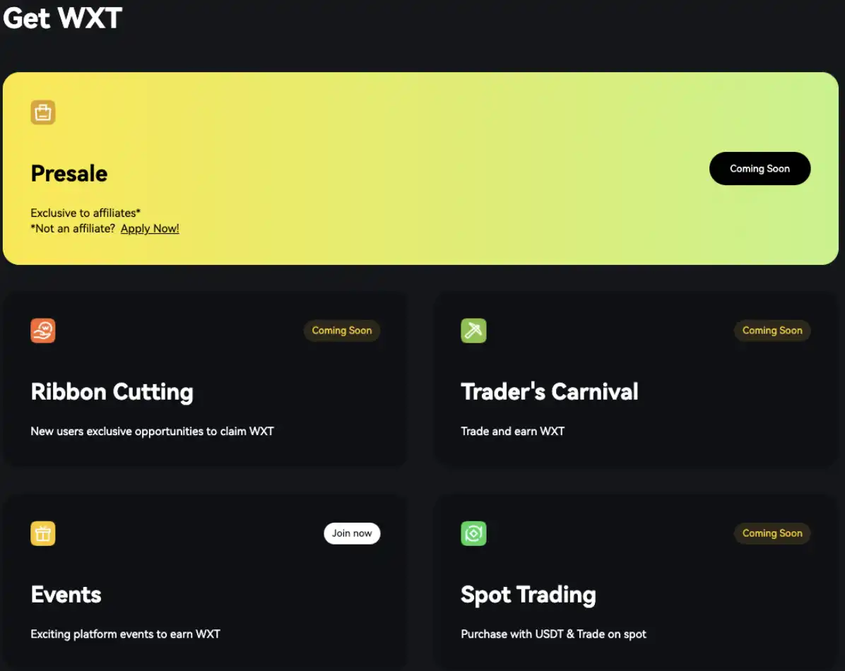 ・Launchpad:持有 WXT 可获得热门项目专属空投;