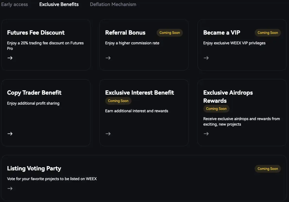 ・通缩机制,WEEX 交易所将择机启动 WXT 回购销毁程序。