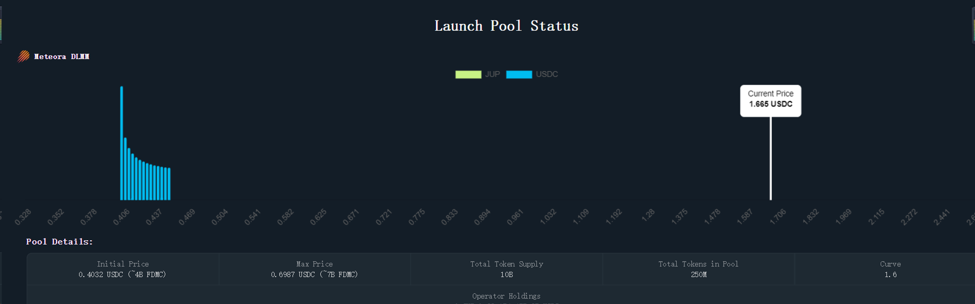 对代币购买者来说,JUP Launchpad 采用 DLMM(动态流动性做市商)的模型进行代币销售。DLMM 模型将一个价格范围细分成多个离散型的价格区间,团队主要提供 Token 的流动性,用户提供 USDC 流动性,在这一过程中完成代币售卖。此外 Jupiter 为了减少复杂机制对用户的影响,依然提供了 DCA 和限价单功能,使得用户可以在代币发售期间依托合适的策略完成代币购买。
