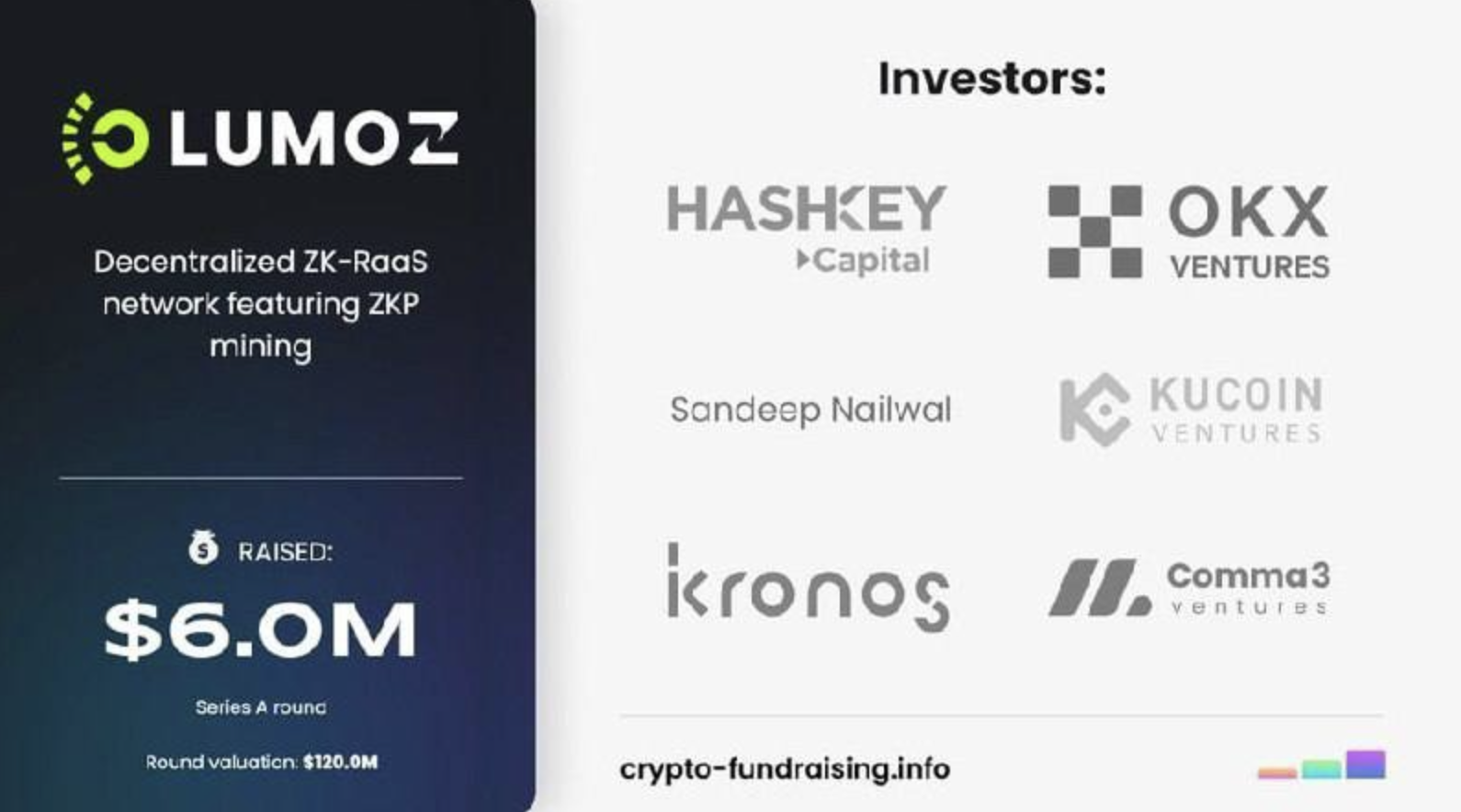Lumoz 的前身是 Opside,过往业务也是 ZK-RaaS 平台。在今年 4 月 8 日,Lumoz对外披露其以 1.2 亿美元估值完成新一轮融资,OKX Ventures、HashKey Capital、KuCoin Ventures 等参投。