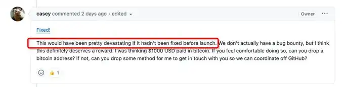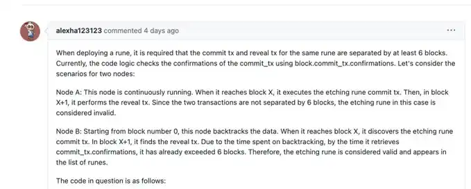 值得一提的是,据比特里里的推文透露,GeniiData 在前段时间给 Casey 反馈了一个重大 bug。对于这个 bug 的严重性,Casey 原话是「This would have been pretty devastating if it hadn't been fixed before launch.」(如果在 Runes 上线前没有被修复,这将是个毁灭性的问题)。