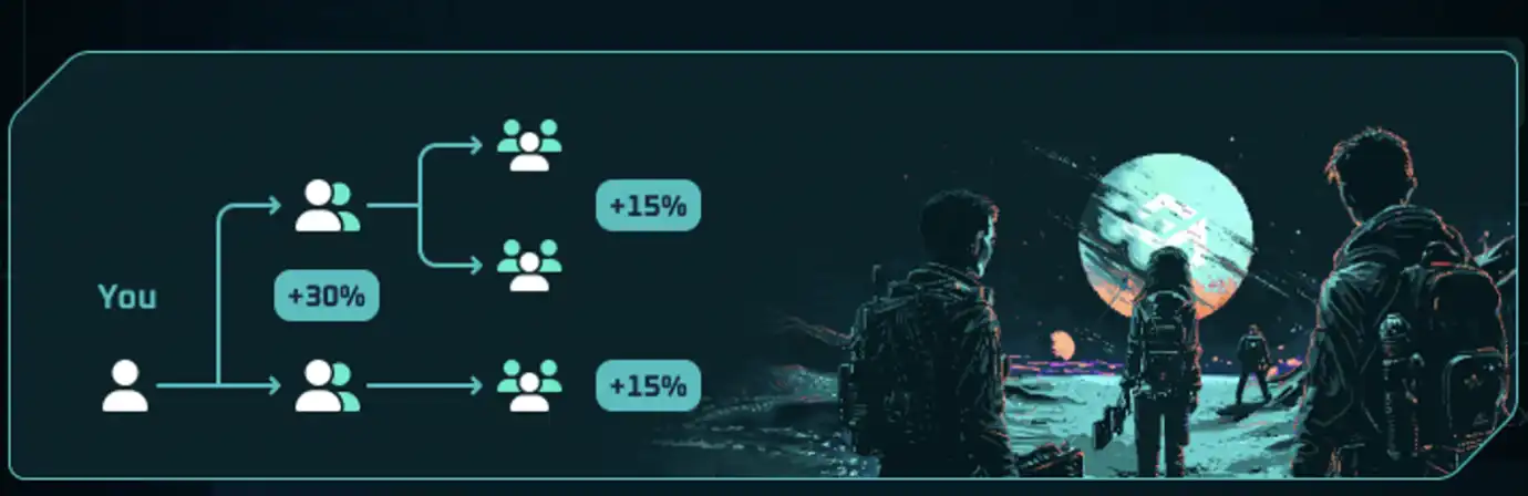 自己先搞 2 个小号,彼此建立绑定关系,这样能确保自己获得最多的 Points。第 1 个账号可以用我的邀请链接,前 7 天能获得 30% 的额外加成。