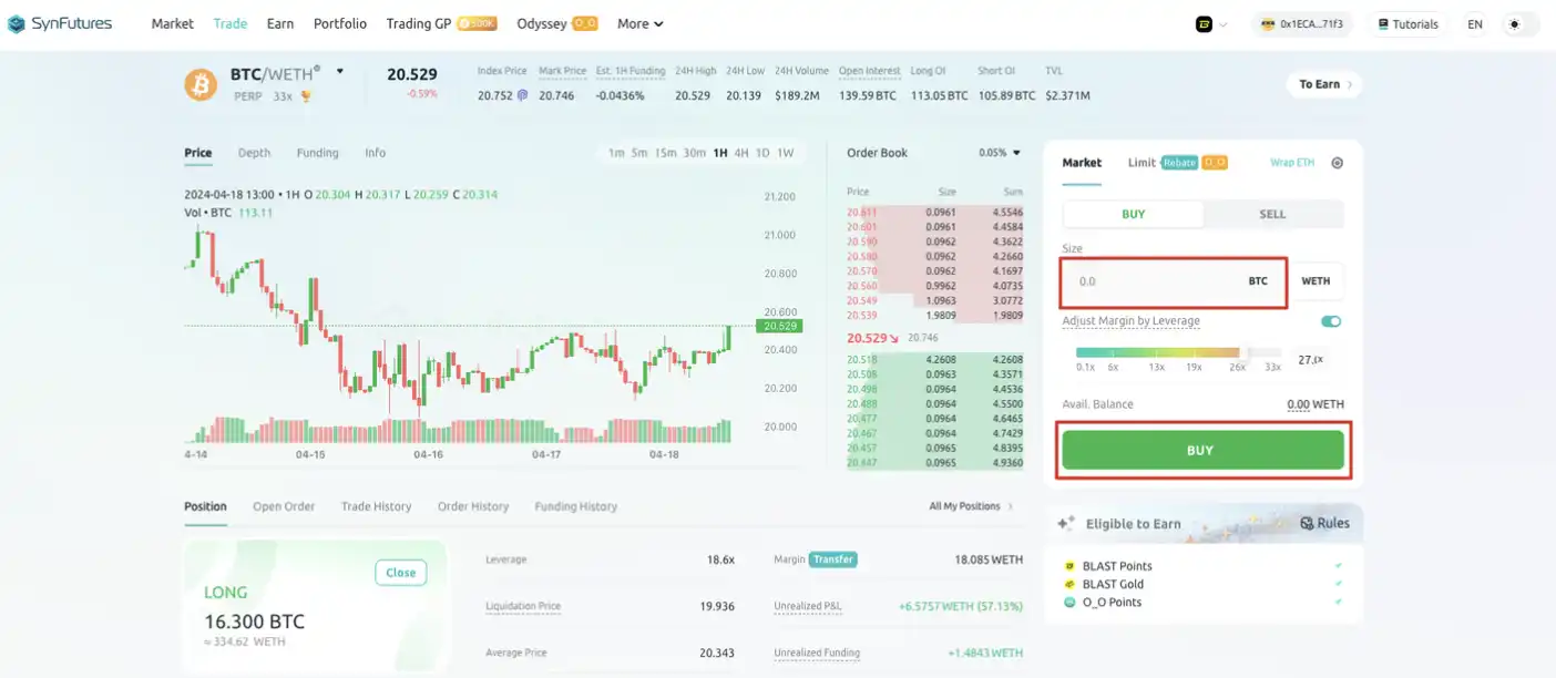 Blast Points 奖励:ETH、USDB 存在 SynFutures 可获得 Blast Points 奖励,分享 Blast 未来 50% 的空投。另外 SynFutures 在 Blast Multiplier 活动支持的项目里,新用户交互可获得 Blast Points 翻倍奖励。