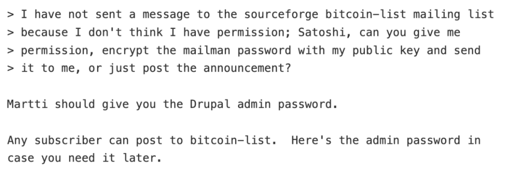 再过一个月,这是中本聪发给 Martti 的最后一封邮件,安排了一些管理员密码的事宜,便又消失了,这一告别,就是 13 年,且大概率再也见不到了。