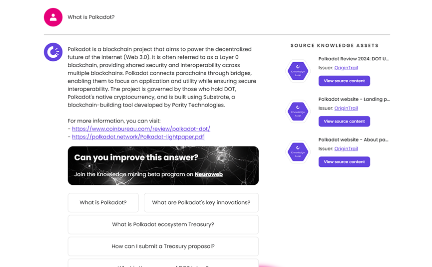 2024 年,PolkaBot 推出了一个人工智能教育平台 PolkaBot AI,该平台是一个类似 ChatGpt 的语言模型,目前提供一些关于 PolkaBot 内容检索。