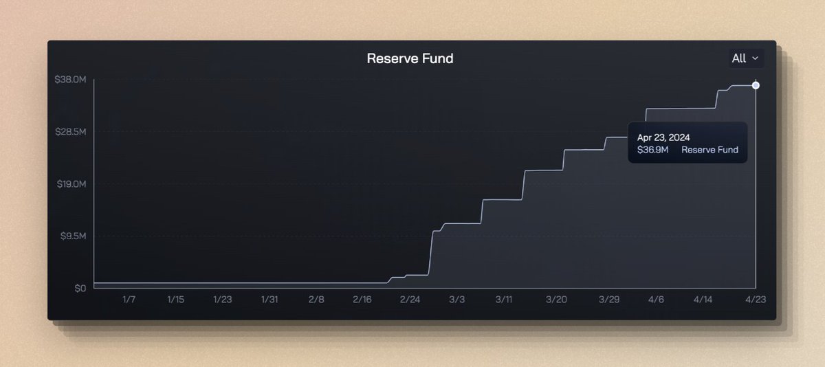 为了应对上文提到的一系列风险,Ethena设立了一个保险基金,资金来源于每个周期协议对收入的分配,一部分会计入保险基金中。