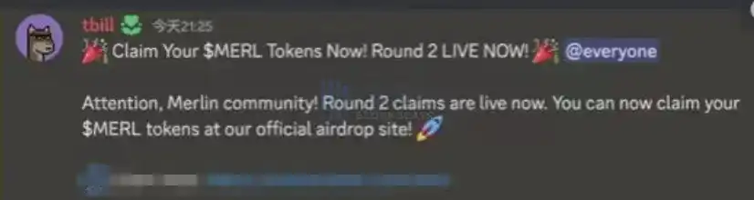 Merlin Chain 官方 Discord 疑似被攻击