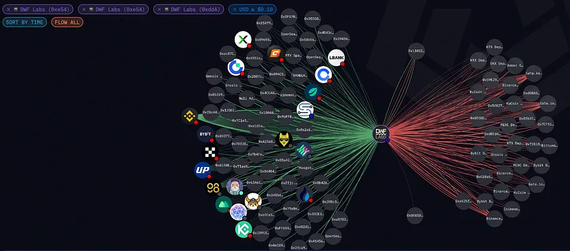 上列是 DWF Lab 钱包的资金流向,可以清楚看到其钱包与其他地址的交互记录,并了解到机构对于资金的使用情况。
