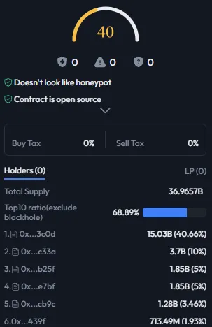 界面亦显示了智能合约的审核,以确保安全性,另外亦显示了头号持有者的比例和地址,让用户能够更容易追踪聪明钱的流向,以及了解代币是否过于集中或分散。