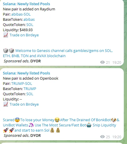 Birdeye Bot: 提供即时访问价格、交易量、流动性和持有者数量信息,满足加密交易者对即时数据的需求。新配对机器人功能亦會通知用户 Birdeye 支持的交易所中新上市的交易对,为交易者提供了在识别潜在投资机会方面具有竞争优势的早期信息。