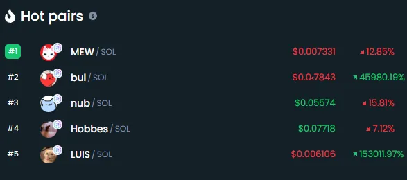 Birdeye 基本上是 CoinMarketCap 的扩展版本,涵盖了各种迷因币的信息。用户可以在上面查看项目的价格、交易量、蜡烛图等等。