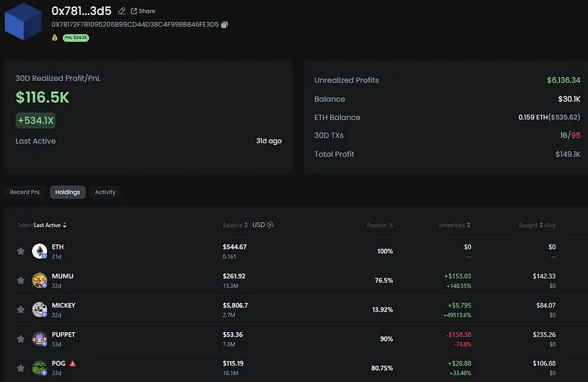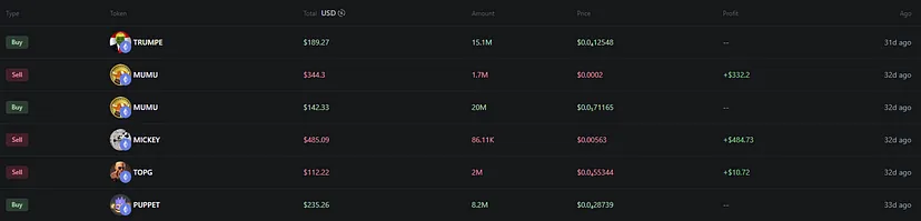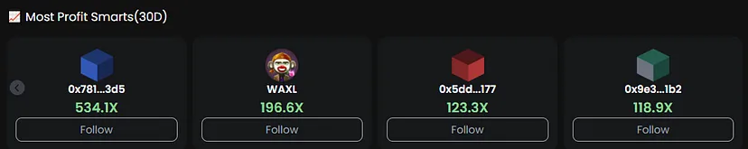 该平台自动跟踪了最盈利的聰明錢钱包,并展示了它们的持仓记录、代币交易历史等信息,旨在让其他交易者能够进行模仿交易。