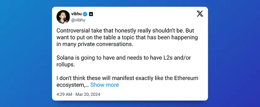 一个月前,DRiP的创始人Vibhu在一则声明中引发了一场迫切需要的辩论:Solana需要有L2和Rollup。