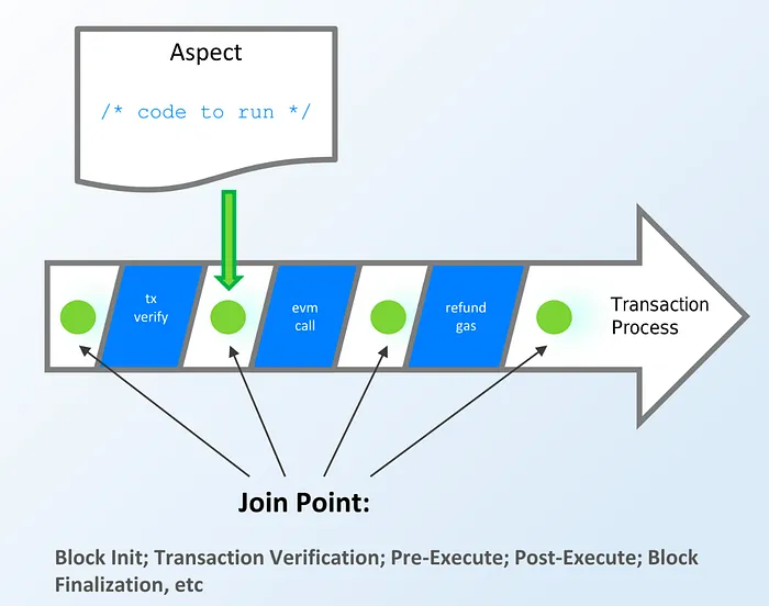 Artela有一个扩展层,允许添加名为Aspect的本地用户定义扩展模块,在确保与现有EVM智能合约兼容的同时,提高了可编程性。Aspect允许开发人员在智能合约之外的整个交易生命周期中注入额外的逻辑来处理交易和相关区块。