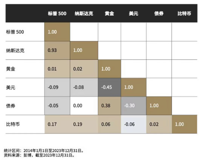 比特币独有的特性造就了其和其他传统资产的显著不同:稀缺、流动、可分割、便携、可转让和可替代、可审计且透明等。从 5 年维度看,2018 年至 2023 年间,比特币收益相与传统资产类别的相关性平均仅为 0.27。重要的是,比特币收益与黄金和债券这两个传统避险资产的收益的相关性分别为 0.2 和 0.26。而债券和黄金之间的相关性高达 0.46。我们拉长从 10 年维度看,2014 年至 2023 年间,和比特币相关性最高的纳斯达克 100 指数也仅为 0.19,与黄金和债券这两个传统避险资产的收益的相关性更低至 0.06 和 0.02。所以比特币作为投资组合其收益与其他资产类别收益的相关性较低,可以做到很好的投资组合分散。