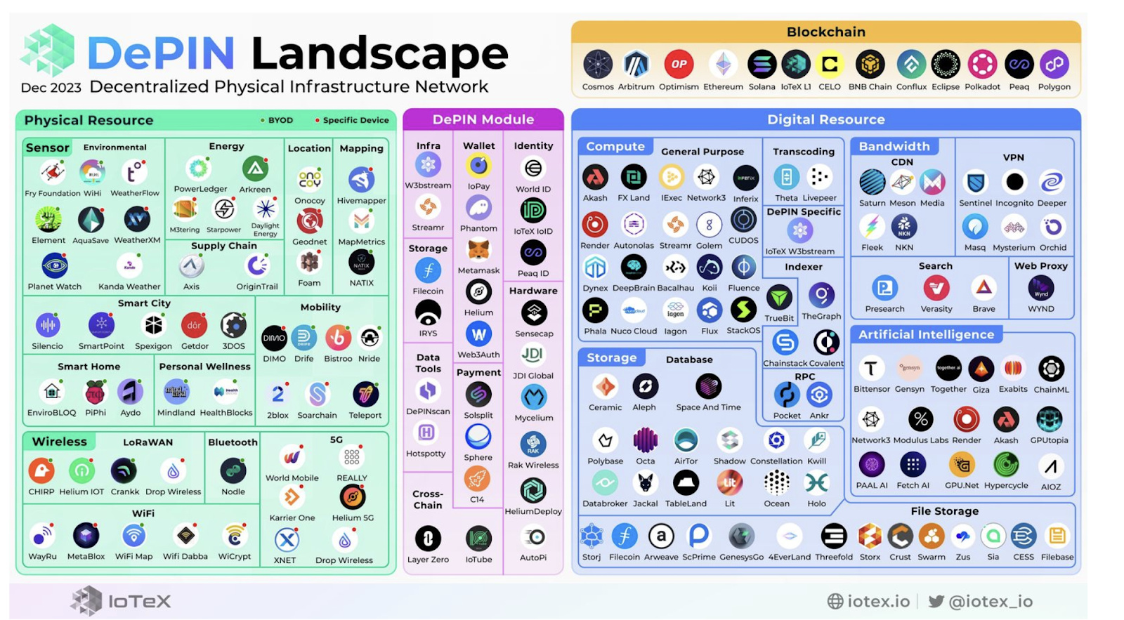 正如刚才所提到的,DePIN 赛道其实一直都有投资机构以及创业者在布局,只是 2023 年初的市场环境不适合,并且关于 DePIN 的新范式还在探索之中,因此很少推出新的 DePIN 项目。到了 2023 年底,无论是市场环境的向好还是创业者的探索积累,许多项目从最初的理念逐渐落地初具雏形,于是开始陆续推出市场,之后的动作才被市场捕捉到,此时DePIN在技术创新乏力的市场中迅速占据了重要的位置。